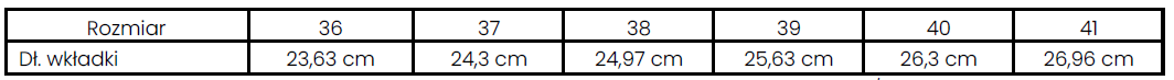 Przy wyborze rozmiaru znaczenie ma także tęgość stopy i wysokość podbicia.