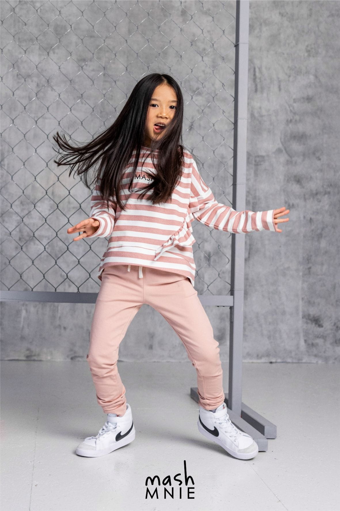 Wygodne spodnie dziewczęce z kieszeniami o luźnym i wygodnym kroju polskiego producent mashMNIE wykonane z najwyższej jakości bawełny zapewnią komfort i wygodę naszemu dziecku. Nogawki zakończone ściagaczem. W pasie szeroka guma z ozdobnym sznurkiem.