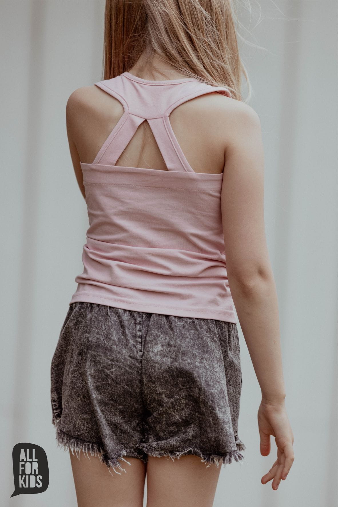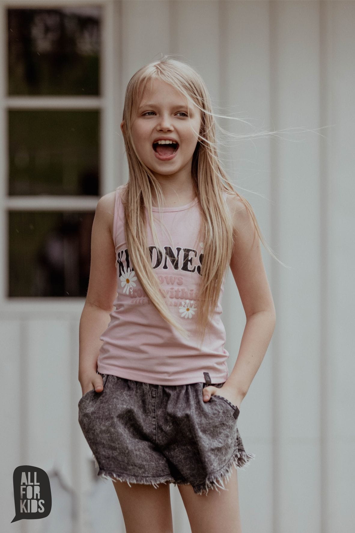 Spodenki szorty dziewczęce All For Kids wykonane z cienkiej delikatnej bawełny zakończone modnymi szczępieniami. Spodenki w pasie posiadają gumkę oraz kieszonki po bokach. Ich niepowtarzalny krój nada efektownego stylu małej modnisi.