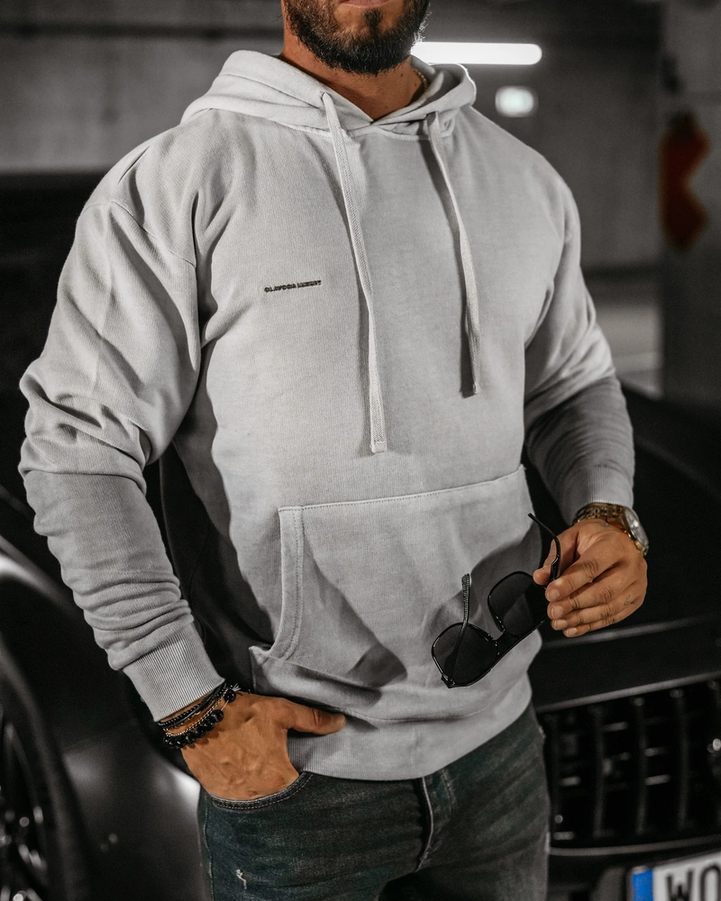 Bluza męska z kapturem, typu hoodie. Wykonana w 100% z bawełny. Na brzegach prążkowane