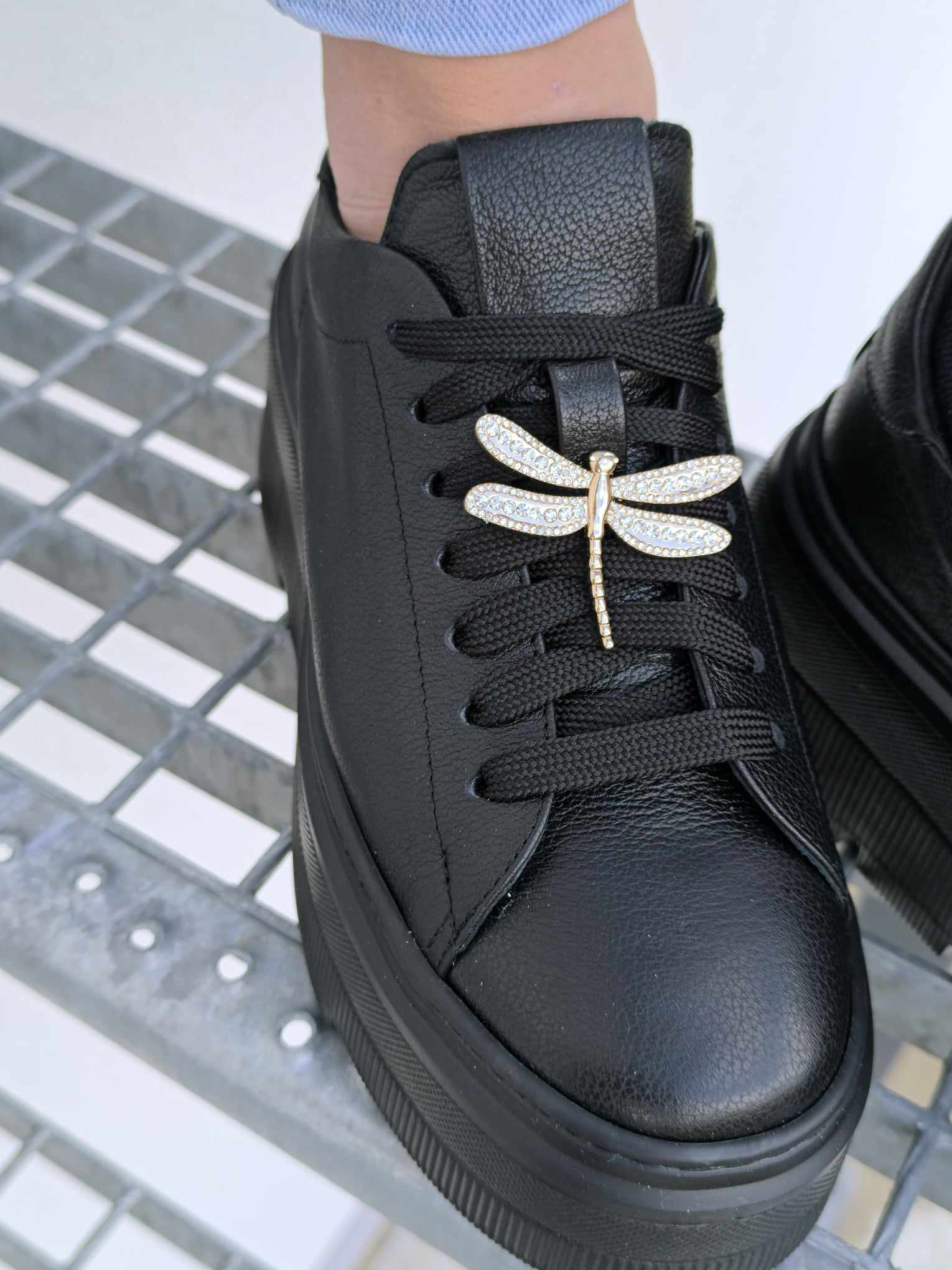 Buty damskie o najmodniejszym fasonie typu sneakersy, na podwyższonej opatentowanej podeszwie z uroczą ozdobną broszką w całości pokrytą pięknie błyszczącymi cyrkoniami.