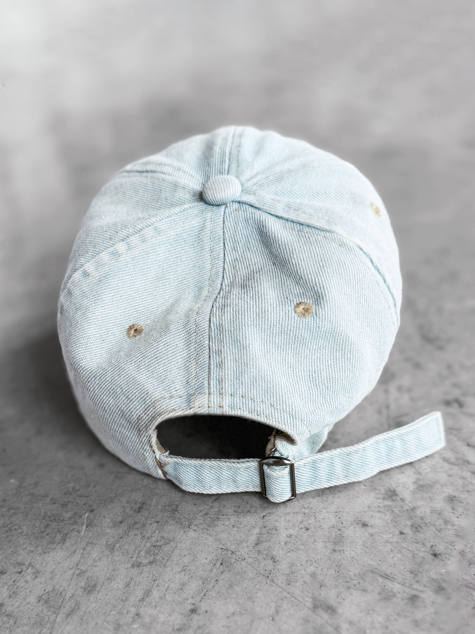 Casualowa, jeansowa czapka z daszkiem. Wykonana z wysokiej jakości materiału bawełnianego. Na przodzie obszerne logo marki OLAVOGA z kontrastowym napisem OLV. Regulacja na tyle.