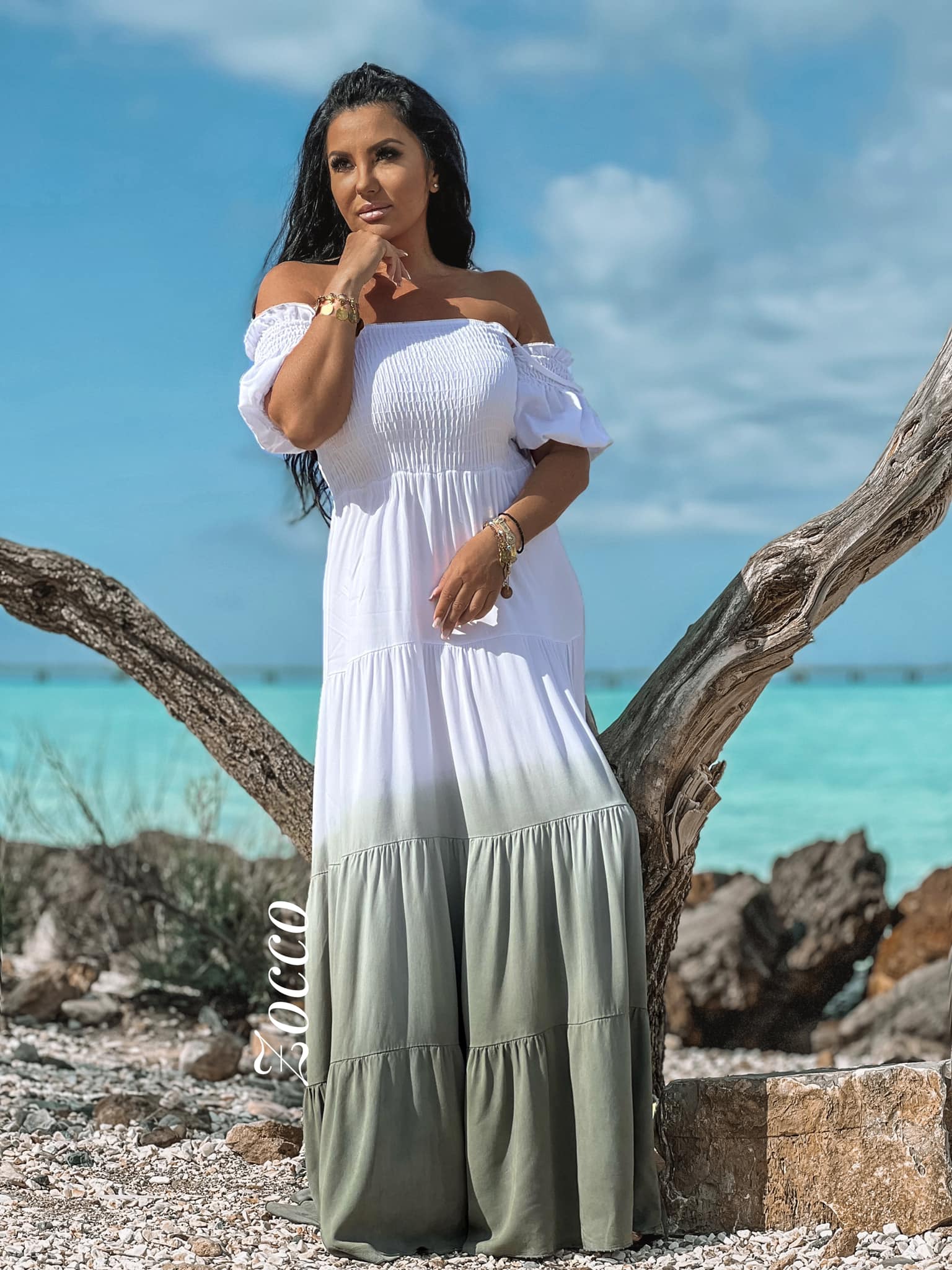 Sukienka maxi z efektem ombre ZOCCO biało - zielona