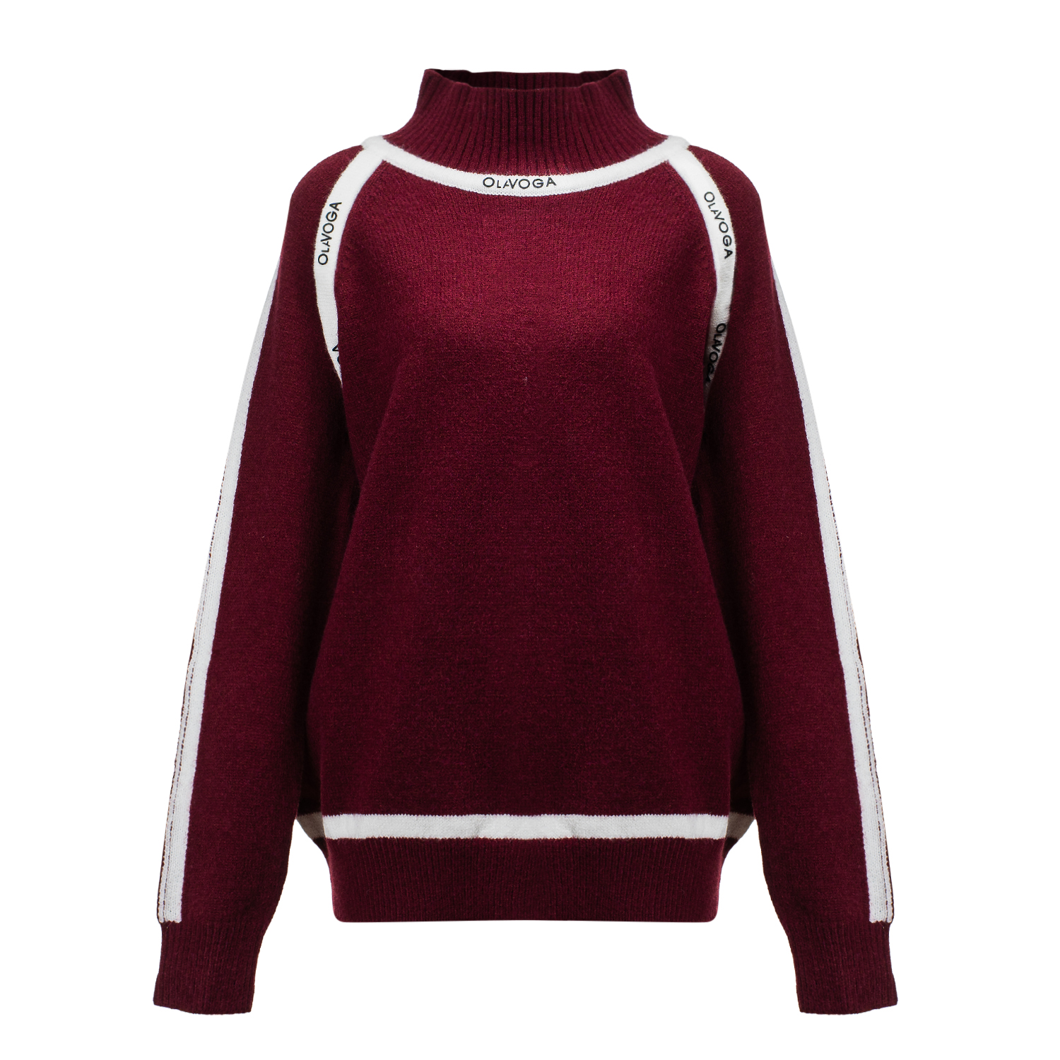 Casualowy sweter z golfem o dłuższym kroju. Wykonany z wysokiej jakości miękkiej dzianiny. Zakończony kontrastowymi lamówkami z logo marki OLAVOGA wzdłuż ramion i dekoltu. Luźny krój z delikatnie opuszczoną linią ramion.
