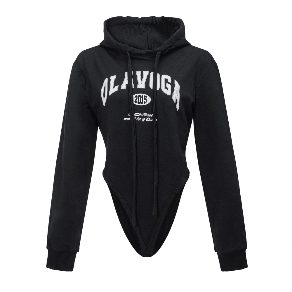 Casualowe body z długim rękawem i kapturem. Wykonane z wysokiej jakości elastycznego materiału. Prążkowane ściągacze. Przód zdobi obszerne logo marki OLAVOGA uzupełnione minimalistycznymi napisami, które przyciągają uwagę i nadają stylizacji wyrazistości.