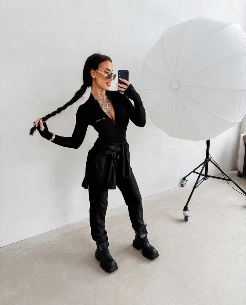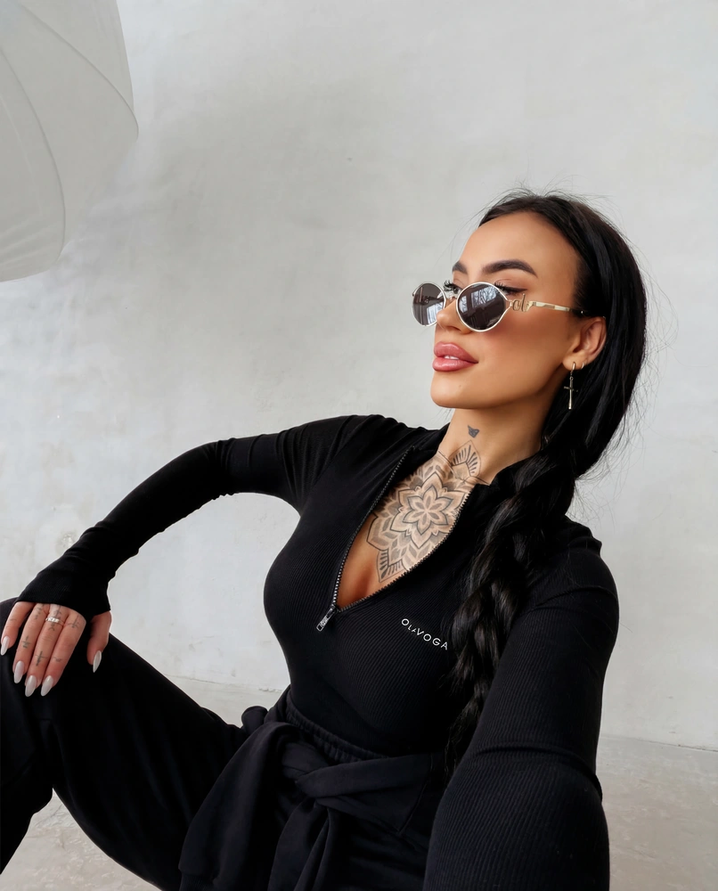 Dopasowane body z długim rękawem o nowoczesnym, podkreślającym sylwetkę kroju. Wykonane z elastycznej, prążkowanej dzianiny. Z przodu praktyczne zapięcie na suwak oraz subtelne logo marki OLAVOGA. Ważne aspekty: dopasowany fason, długi rękaw, stójka z zamkiem, elastyczna prążkowana dzianina, subtelne logo marki OLAVOGA z przodu.