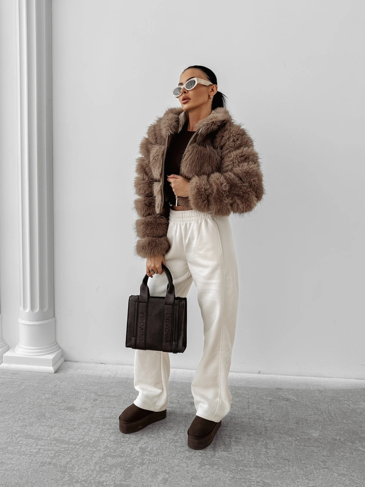 Futrzana kurtka damska OLAVOGA LANIKA 2025 beż