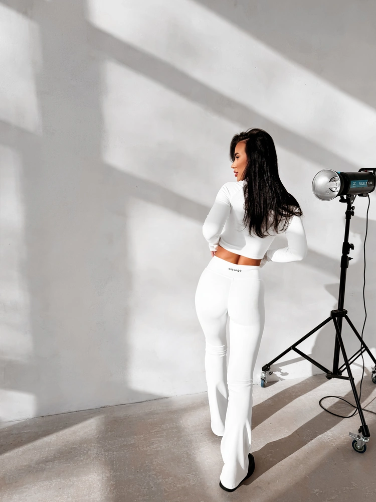 Komplet dopasowany wykonany z elastycznej, miękkiej tkaniny. Legginsy z modelującym pasem podkreślającym sylwetkę oraz subtelnym logo OLAVOGA. Krótka bluza zapinana na suwak. Legginsy z wysokim stanem. Ważne aspekty: dopasowany, modelujący krój, elastyczna komfortowa tkanina, legginsy z wysokim, modelującym pasem, subtelne logo OLAVOGA, krótka bluza zapinana na suwak.