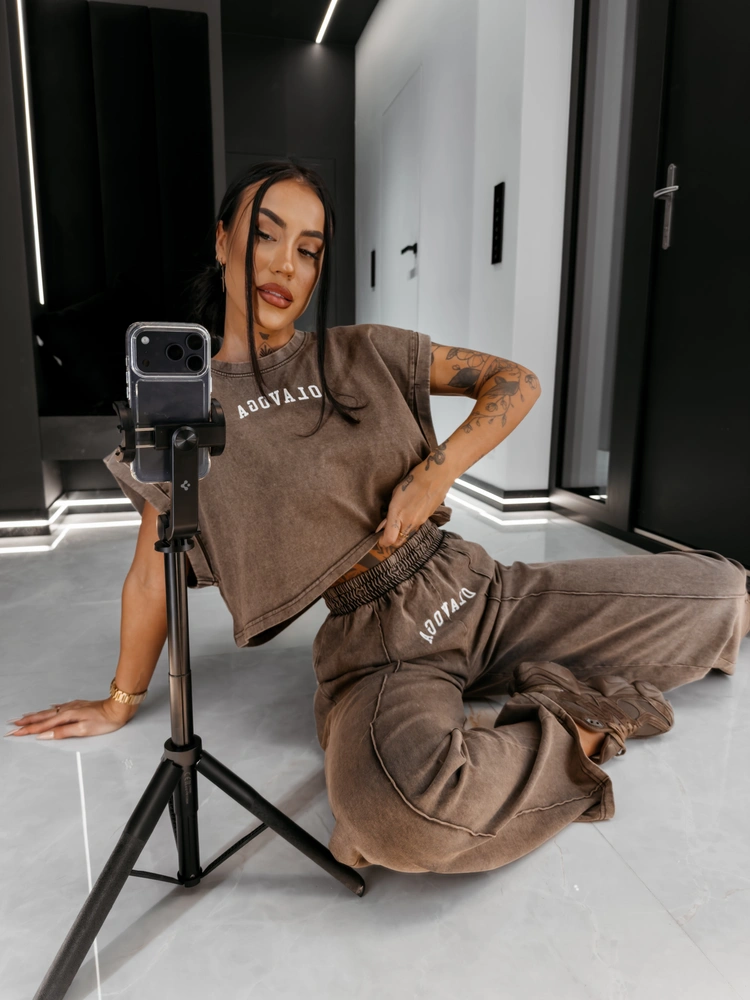 Komplet damski OLAVOGA LENCI 2026 ciemny brąz