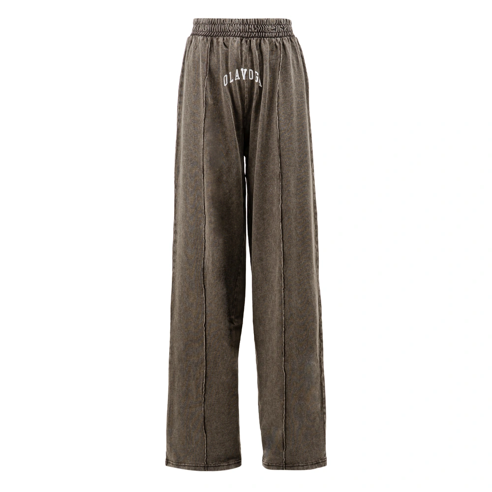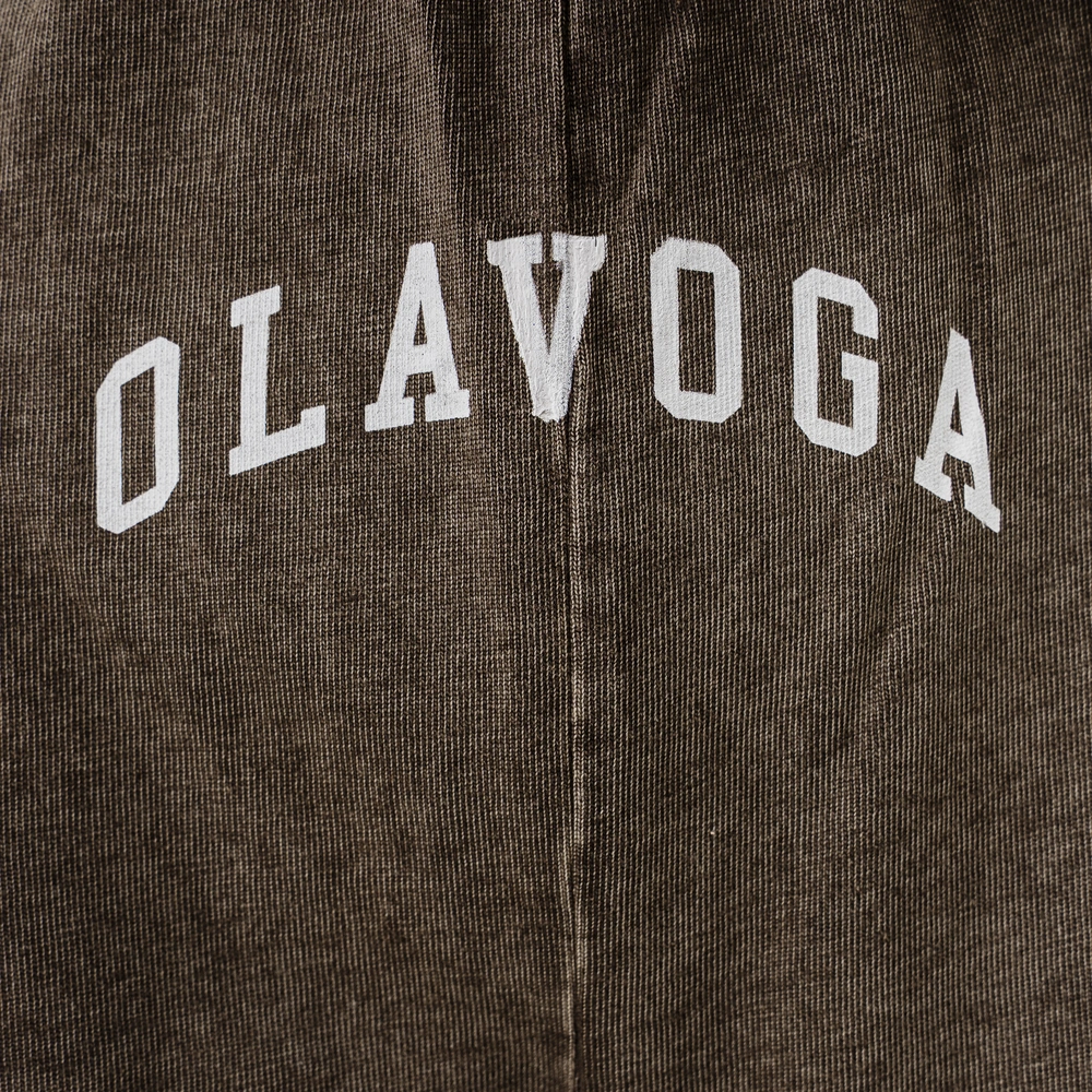 Komplet z wysokogatunkowej bawełny o gramaturze 270g - krótki top o luźnym kroju boxy - szerokie rękawy typu cap sleeve - okrągły dekolt - spodnie z wysokim stanem i elastyczną talią - długa, szeroka nogawka z przeszytym kantem - washed effect na całości - sitodruk z kontrastowym logo brandu na topie i spodniach.