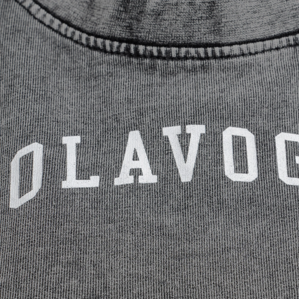 Komplet z wysokogatunkowej bawełny o gramaturze 270g - krótki top o luźnym kroju boxy - szerokie rękawy typu cap sleeve - okrągły dekolt - spodnie z wysokim stanem i elastyczną talią - długa, szeroka nogawka z przeszytym kantem - washed effect na całości - sitodruk z kontrastowym logo brandu na topie i spodniach.