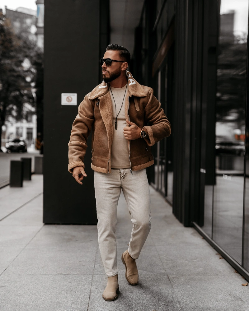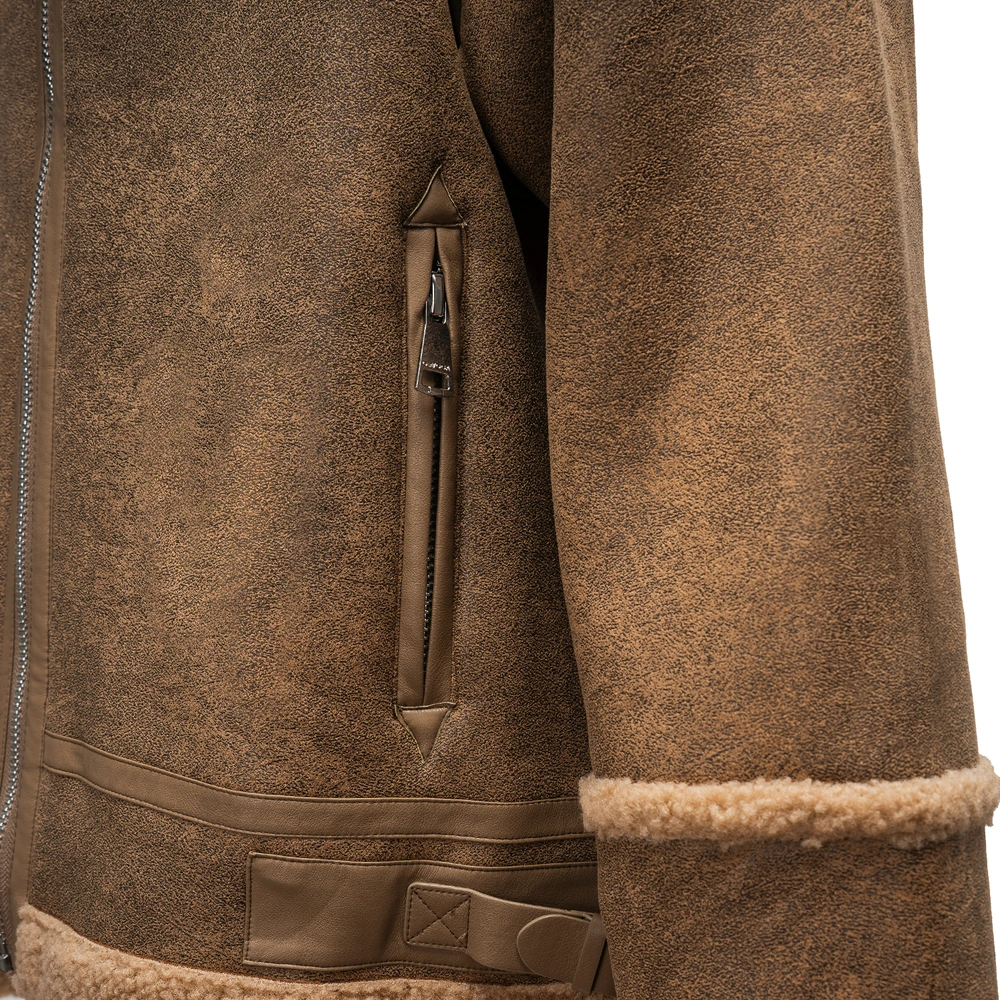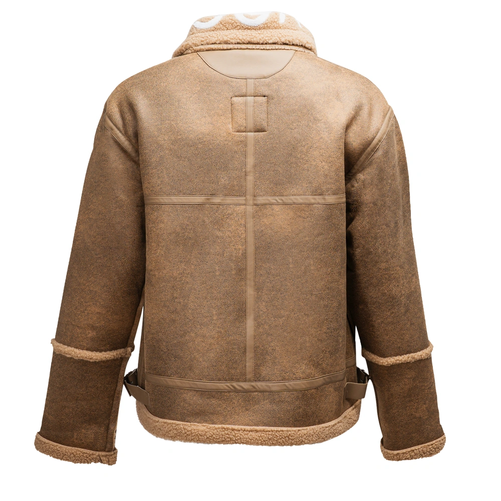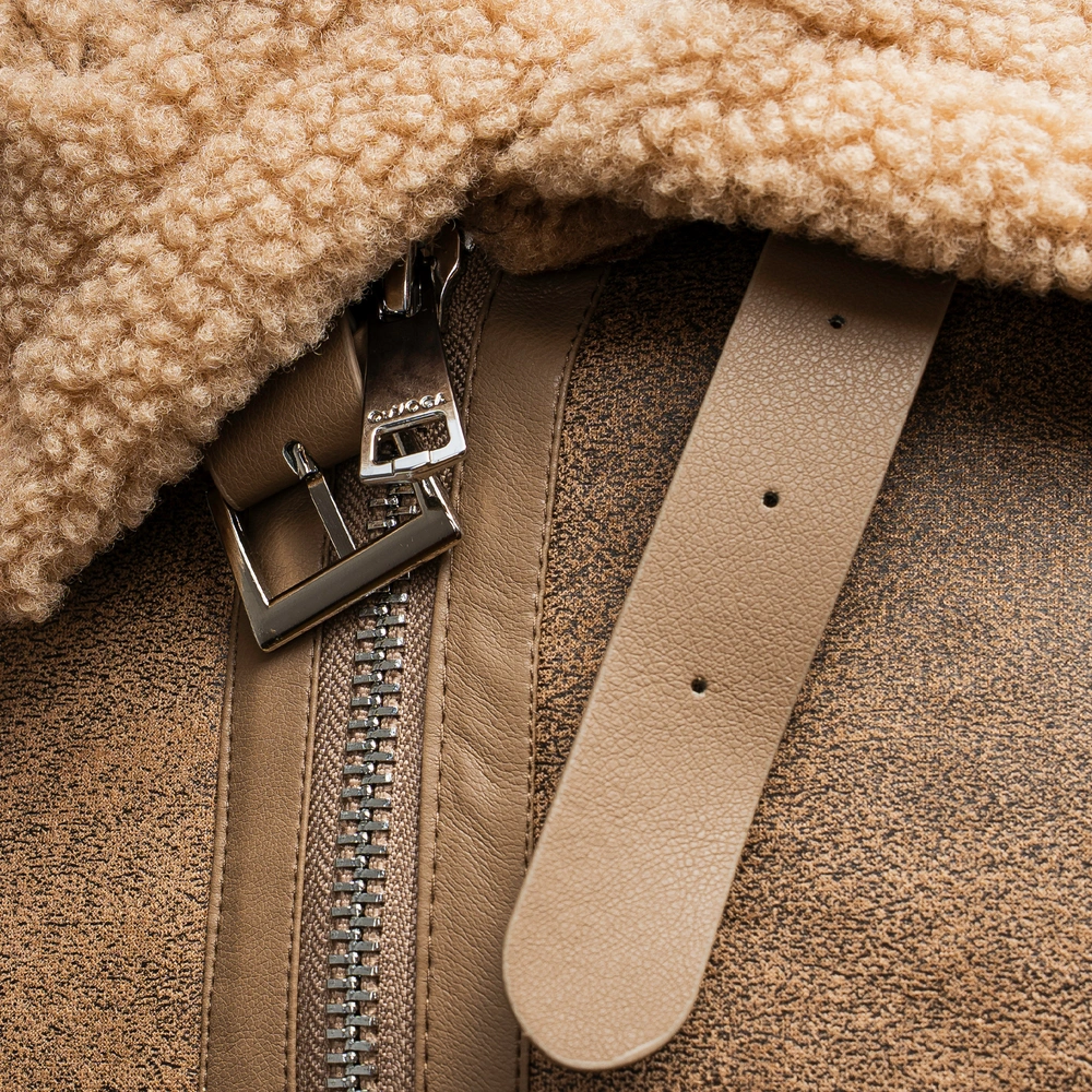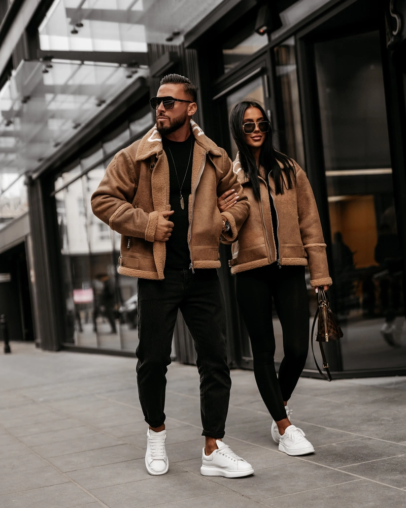 Kurtka męska, utrzymana w klasycznym stylu. Wykonana z materiału imitującego skórę, z ocieplanym wnętrzem wykończonym miękkim kożuszkiem. Posiada prosty, lekko oversize’owy krój. Charakterystyczny, logowany kołnierz z klamrą, regulowane paski po bokach oraz wywijane mankiety. Zapinana na solidny suwak, z wyraźnymi przeszyciami i detalami. Produkt idealny dla niej i dla niego.