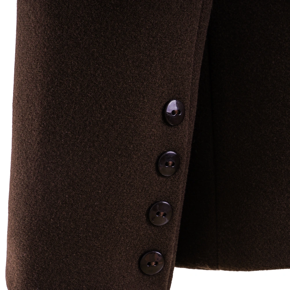 Elegancka marynarka o dopracowanym charakterze, utrzymana w nowoczesnej, minimalistycznej formie. Wykonana z wysokiej jakości materiału o miękkiej, lekko strukturalnej powierzchni. Klasyczny, taliowany krój. Model dwurzędowy, zapinany na guziki, z wyraźnie zaznaczoną linią ramion i klasycznym kołnierzem z klapami. Na przodzie dekoracyjne patki kieszeniowe oraz precyzyjne cięcia modelujące sylwetkę. Tył zdobi subtelna, logowana naszywka OLAVOGA. Rękawy wykończone guzikami.