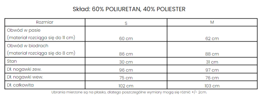 poprzez sznurek. Na brzegach ściągacze. Na tyle nogawek biały haft z logo marki OLAVOGA w ciekawym
