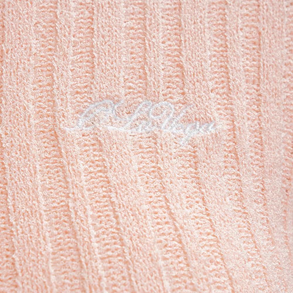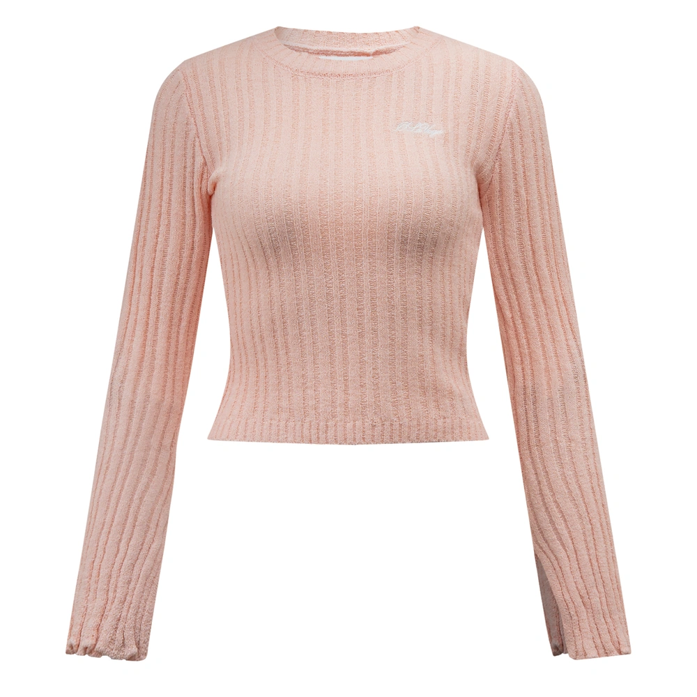 Dopasowany fason o krótszej formie - okrągły dekolt - długie rękawy zakończone rozcięciami - prążkowana struktura materiału - subtelne haftowane logo brandu.