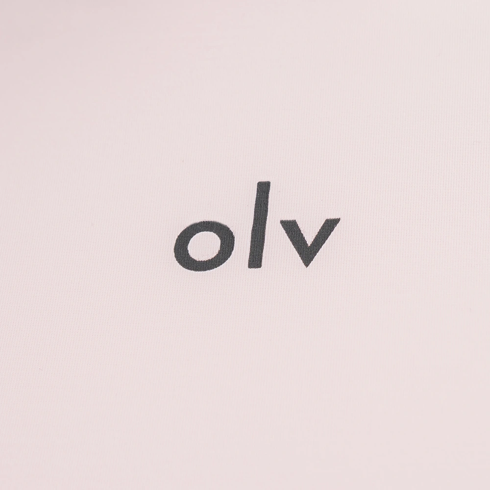 Fason slim fit - zachowany w estetyce basic premium - klasyczny krótki rękaw - lekko zaokrąglony dekolt - wykonany z lekkiej technicznej elastycznej tkaniny - na froncie minimalistyczny nadruk logo OLV.