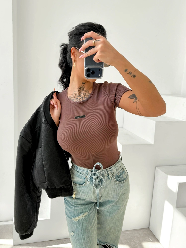T-shirt damski OLAVOGA MOVENA 2026 brąz