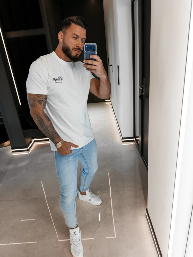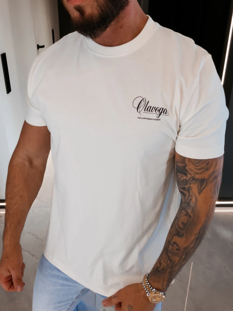 Regular fit - okrągły klasyczny dekolt - krótki rękaw - proste wykończenie dołu - wysokogatunkowa bawełna o gramaturze 200g - na przodzie małe logo brandu - na plecach duży kontrastowy sitodruk z logotypem oraz hasłem FOLLOW THE MOVEMENT.